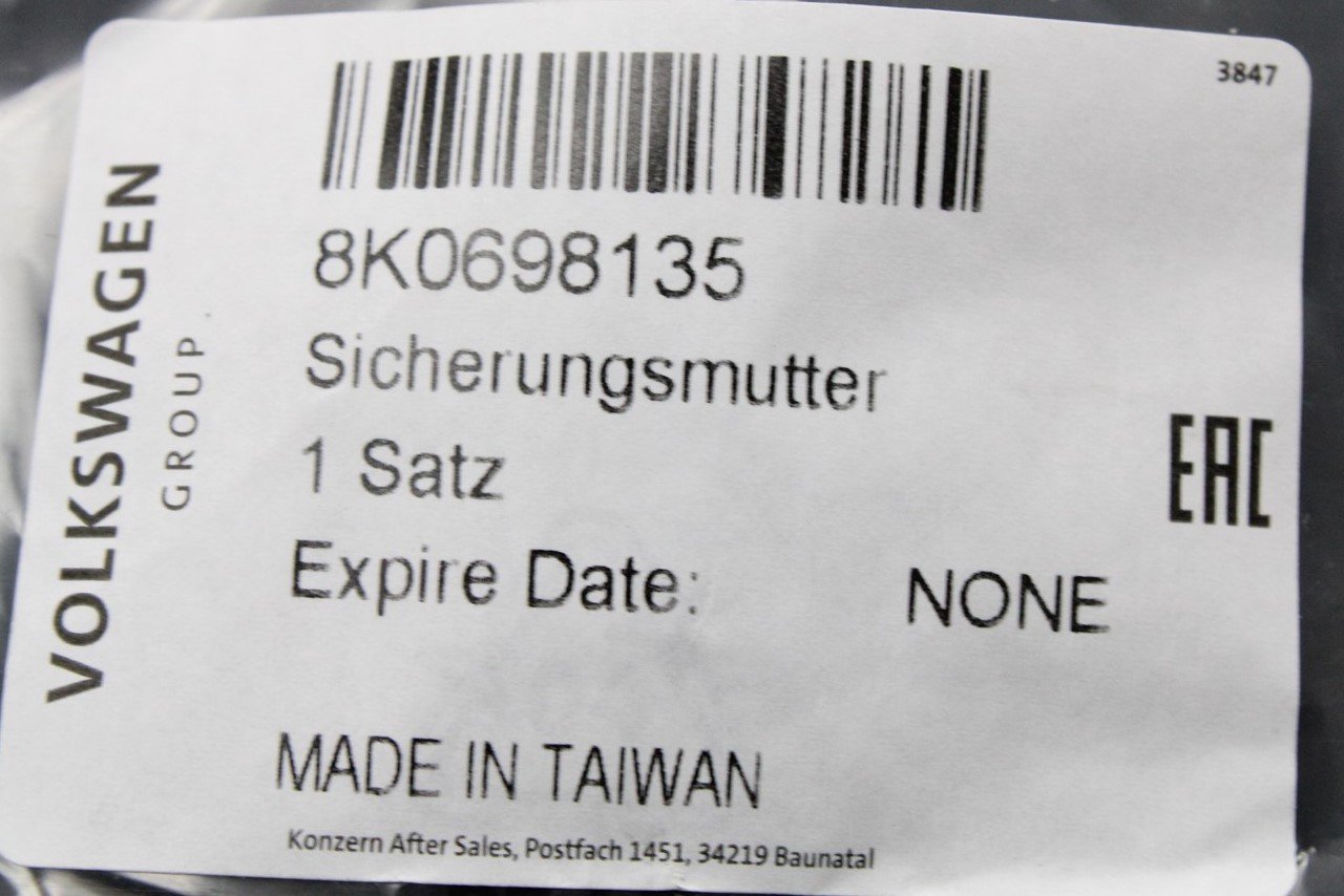 VW Touareg Audi A4 A5 A6 A7 A8 master cylinder attachment nut 8K0698135 is backordered and will ship as soon as it is back in stock.