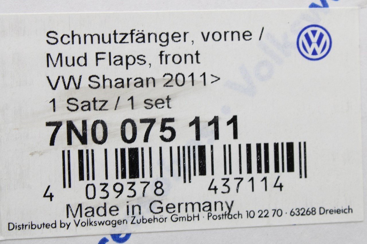 VW Sharan 2011-on accessory mud flaps set (front) 7N0075111 is backordered and will ship as soon as it is back in stock.