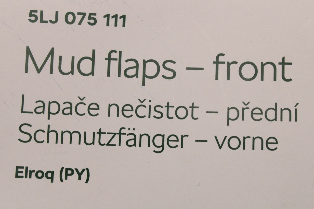 Skoda Elroq 2025-on accessory front mud flaps set 5LJ075111 is backordered and will ship as soon as it is back in stock.