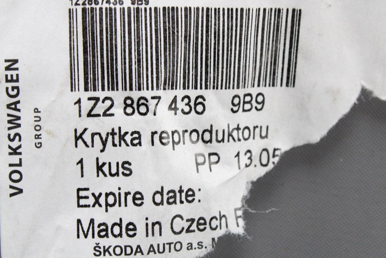 Skoda Octavia Yeti front door speaker grille cover (right) 1Z2867436 9B9