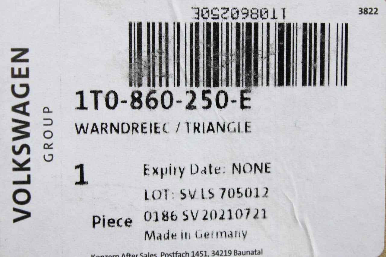 VW Audi Skoda SEAT road safety warning triangle 1T0860250E