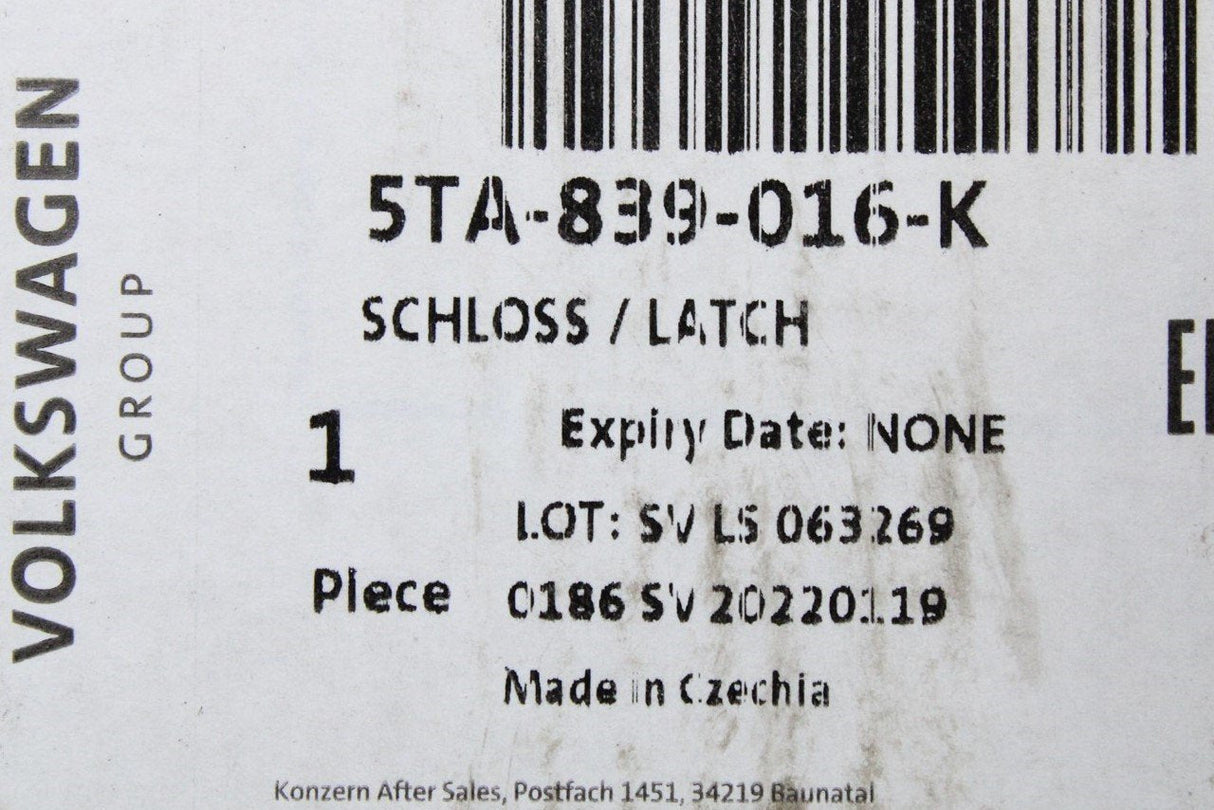 VW Audi Skoda SEAT door lock mechanism (rear right) 5TA839016K is backordered and will ship as soon as it is back in stock.