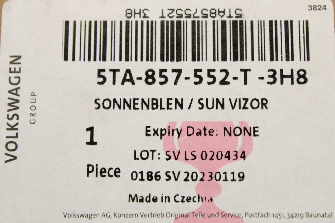 VW Tiguan 16-24 Touran sun visor with mirror (right) 5TA857552T 3H8 is backordered and will ship as soon as it is back in stock.