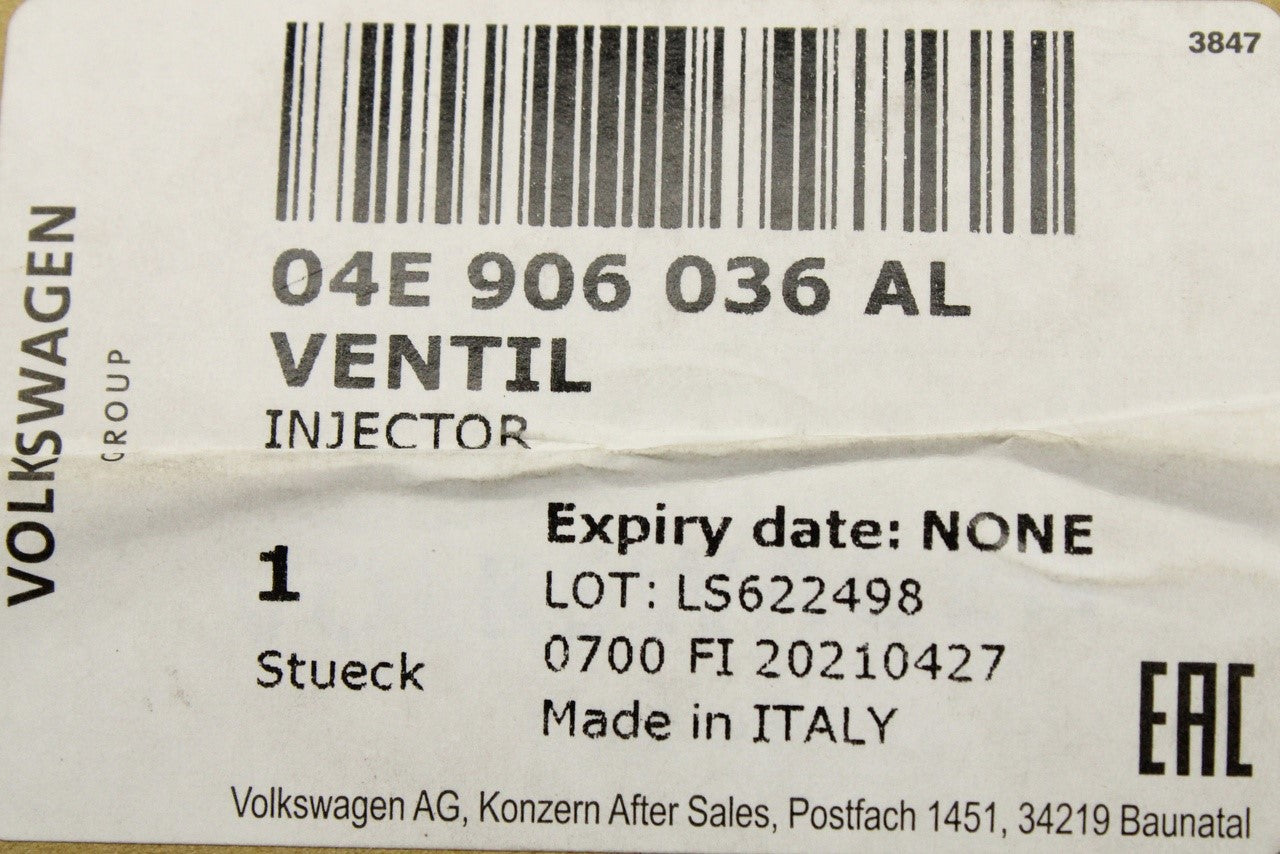 VW Golf Audi A1 Skoda Fabia SEAT injector (1.0 1.2 1.4 TSI) 04E906036AL is backordered and will ship as soon as it is back in stock.