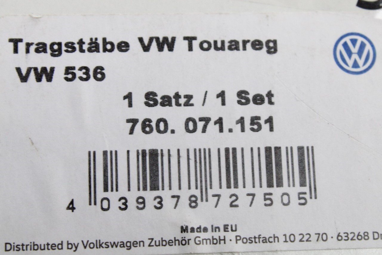 VW Touareg 2018-On accessory aero roof bars for roof rails 760071151 is backordered and will ship as soon as it is back in stock.