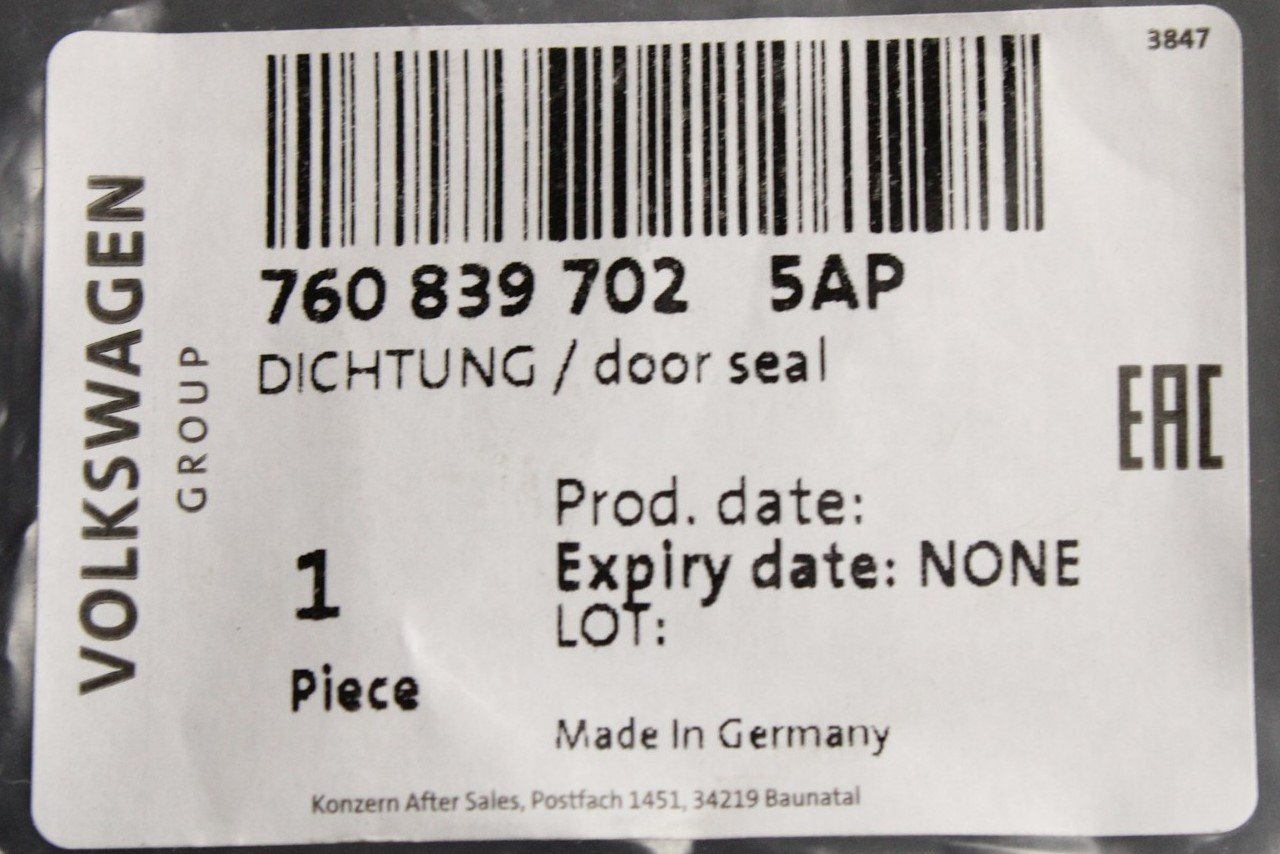 VW Touareg 2018-on outer door seal (rear right) 760839702 5AP
