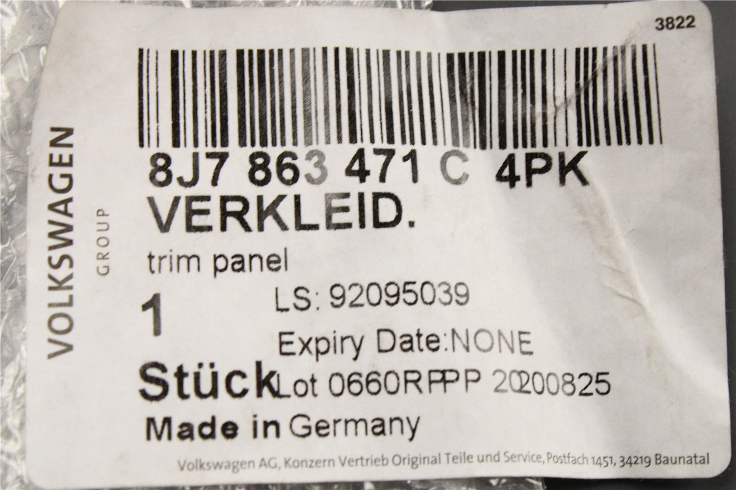 Part Number: 8J7863471C 4PK