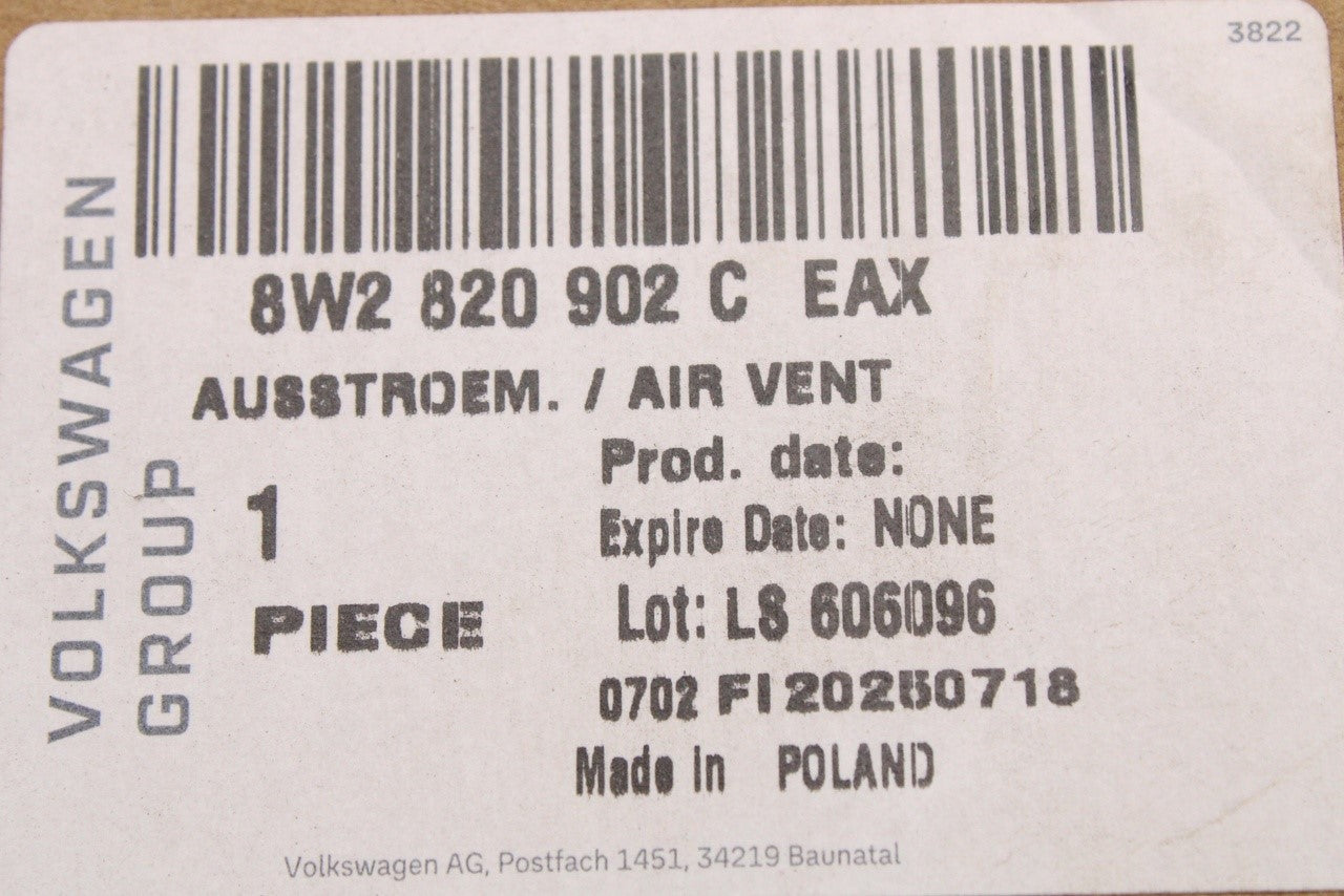Audi A4 A5 RS4 RS5 2016-25 RHD dashboard air vent (right) 8W2820902C EAX is backordered and will ship as soon as it is back in stock.
