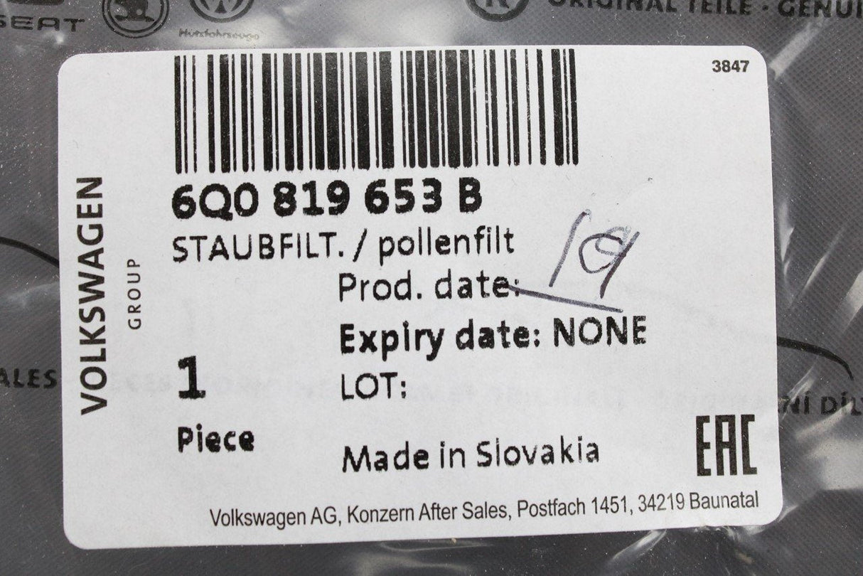 Skoda Fabia Rapid Roomster 2000-2022 cabin pollen filter 6Q0819653B is backordered and will ship as soon as it is back in stock.