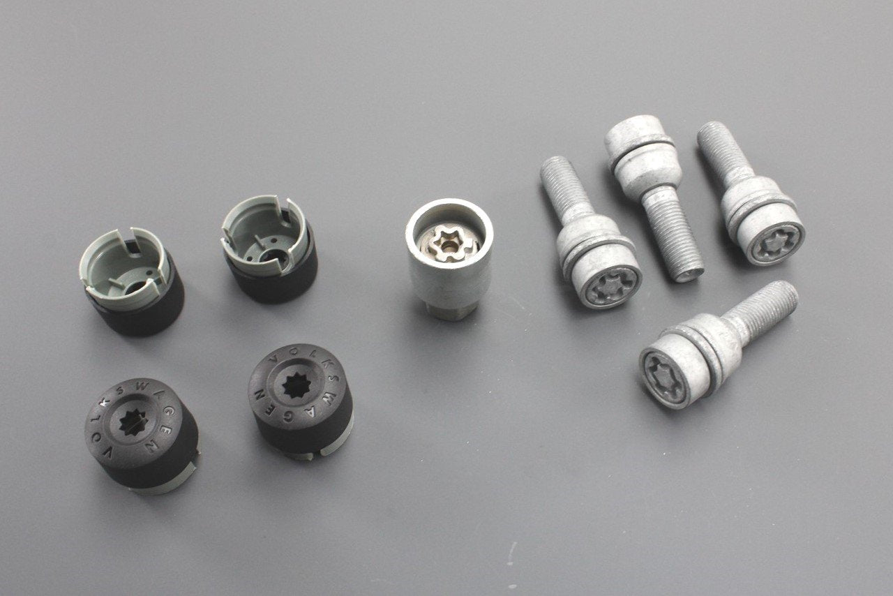 - Set of 4x wheel bolts and caps with 1x locking nut key