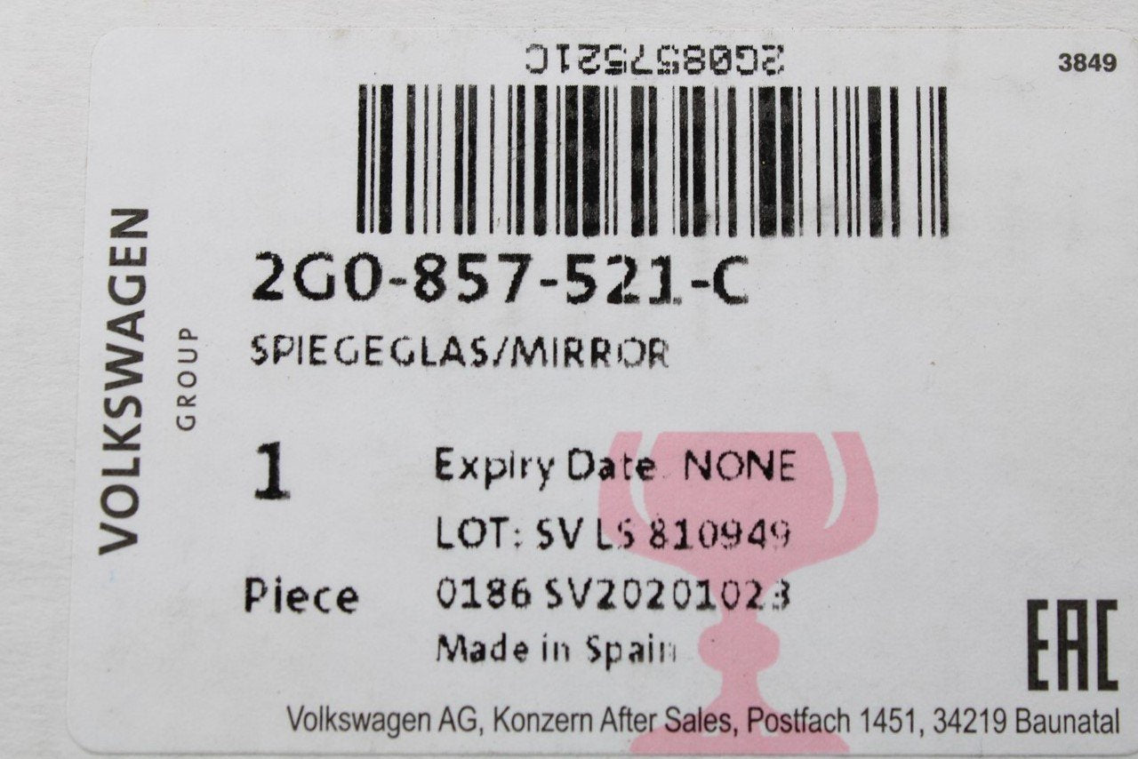 VW Polo AW 2018- Left side wing mirror glass RHD only 2G0857521C is backordered and will ship as soon as it is back in stock.